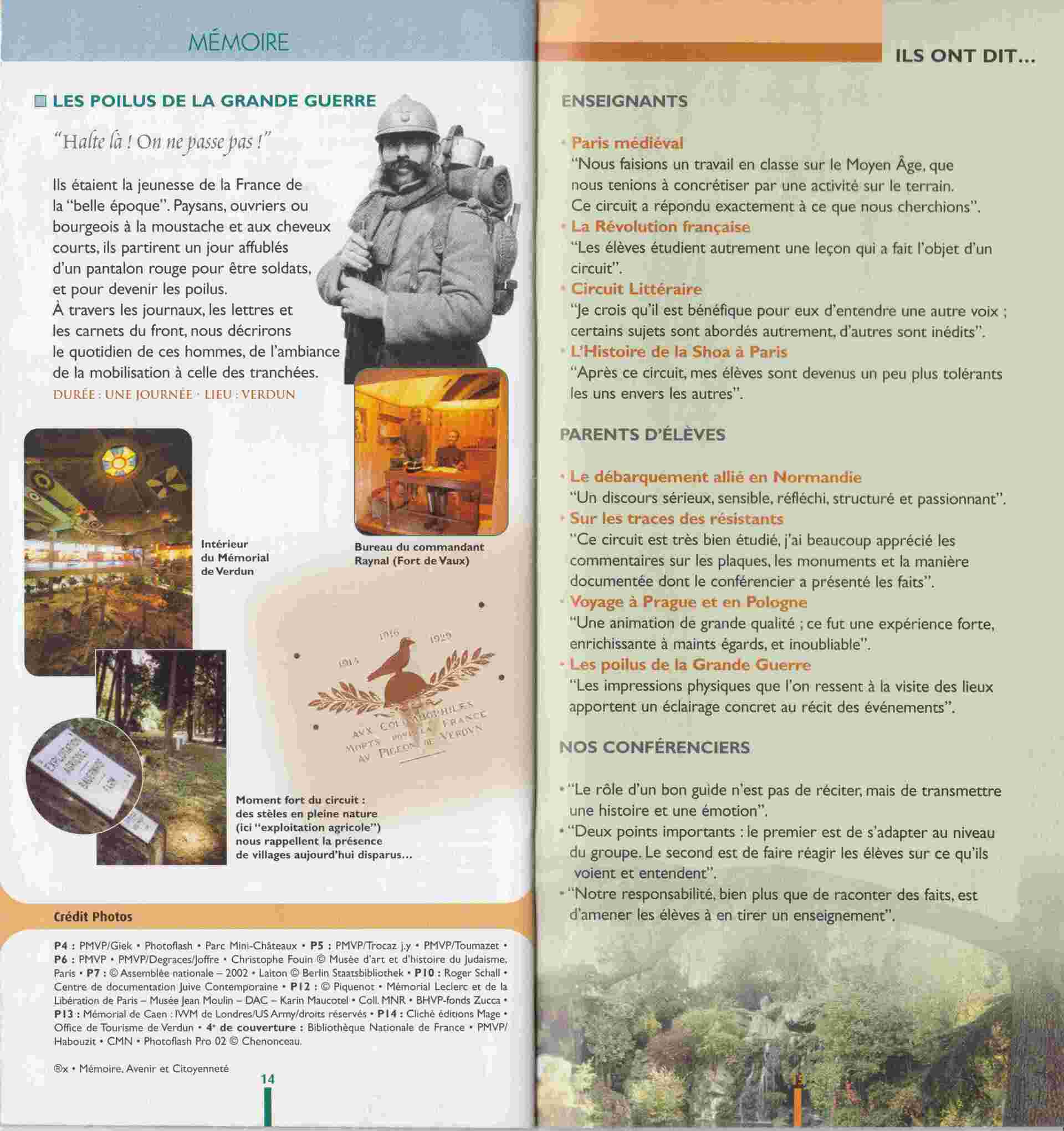 À l'écoute du corps professoral, j'avais ainsi développé toute une série d'itinéraires et d'activités pédagogiques proposées en amont et en aval de la sortie, liés aux programmes enseignés en Histoire, éducation civique, arts et littérature.
